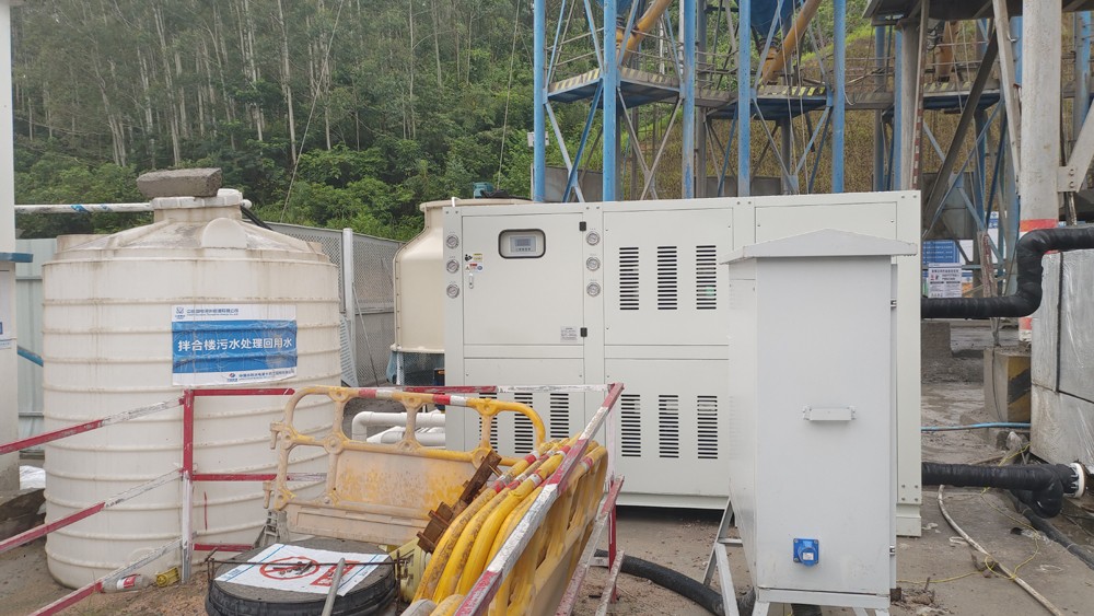 以前大都數(shù)攪拌站是給水池里加冰塊,那樣費用高水溫穩(wěn)定還需要人工搬運冰塊投放進(jìn)去,既不安全各方面投入都高,現(xiàn)在使用華祥公司生產(chǎn)的攪拌站專用冷水機,一鍵開機水溫穩(wěn)定,大大提高了混凝土的品質(zhì)?